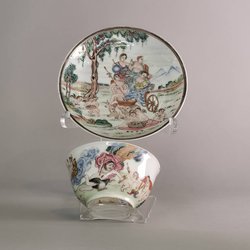 European designs were popular within Chinese export porcelain, and often incorporated scenes from Classical Mythology (such as the Judgement of Paris), the Bible, or contextual historical events (such as the Rotterdam Riots). These designs would be copied by Chinese artists from European prints provided by traders, and it is often possible to trace a direct link between a piece of porcelain and the original source material.