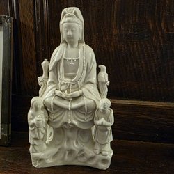 Blanc de Chine porcelain was made in the kilns at Dehua in the South-Eastern coastal province of Fujian, and is prized for its creamy-white, translucent appearance. As with other porcelain types, the characteristics of the finished product is closely linked with the geology and raw materials of the area where it was produced. Dehua clay has a low alkaline content and the porcelain contains high levels of pure china stone, which results in a very hard and sugary body, particularly suited to the production of moulded figures. Consequently, Blanc de Chine figures of Daoist and Buddhist deities are common, as well as intricate moulded decorations on censers and incense burners. Other collectors prize the simplistic beauty of blanc de chine pieces with little decoration to detract from the impact of the colour and glaze. The glaze used in this type of porcelain is transluscent, and appears to adhere to the body of the piece. Dehua porcelains vary over time in their tone: those produced in the Ming Dynasty are said to have a pinkish transluscency, while those from the Transitional Period have a fleshy or pale yellow tone and later examples from the 19th century onwards are rather more transluscent, with a clear white tone. In the mid-20th century several kiln sites dating from the Song-Yuan period were unearthed in the region, but the Dehua kilns received little scholarly attention in China until the 1970s. The recognition of their historical importance and beauty has led to a great increase in academic work on Blanc de Chine, a small selection of which we have recommended below: